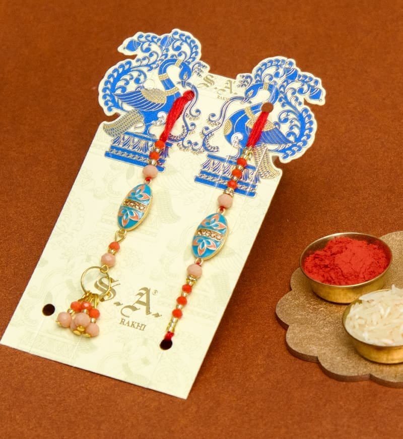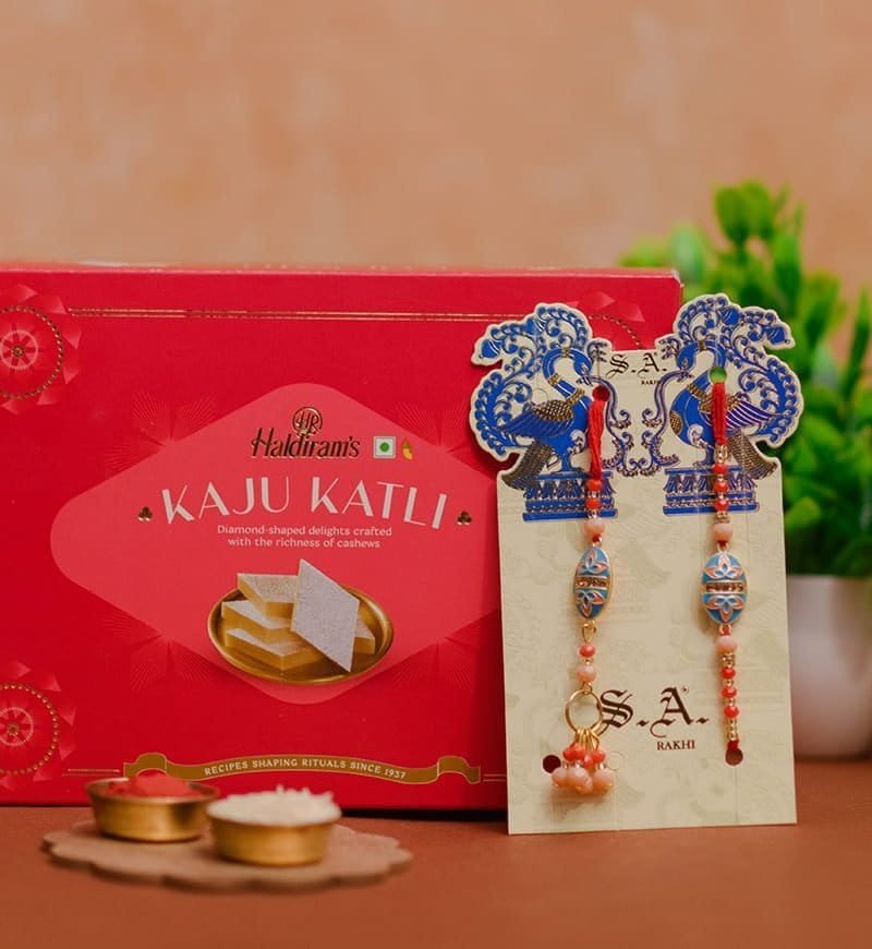 Make Raksha Bandhan extra special with this Bhaiya Bhabhi Rakhi Set with Kaju Katli Pack, a perfect combination of love, tradition, and sweetness. This beautifully designed Rakhi set includes an intricately crafted Bhaiya Rakhi and a matching Lumba Rakhi for Bhabhi, symbolizing the cherished bond between siblings and their extended family. To add joy to the celebration, this set comes with a delicious pack of Kaju Katli, making it a thoughtful and festive gift.