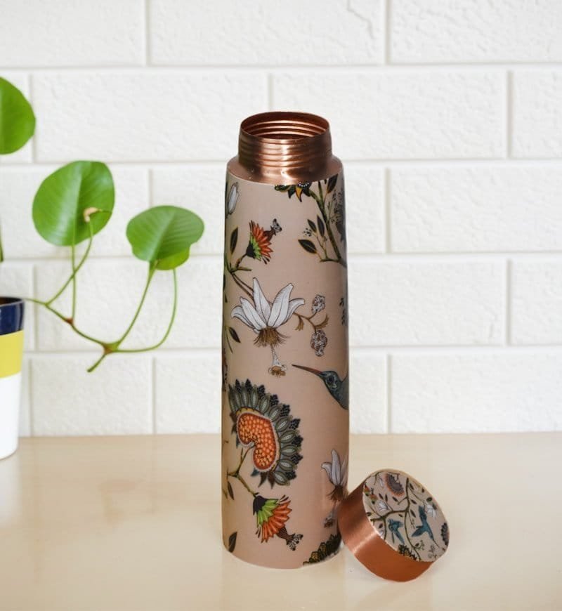 Copper Water Bottle Meena Print With Lacquer Coating Water Bottle with Advanced Leak Proof | 950 ml