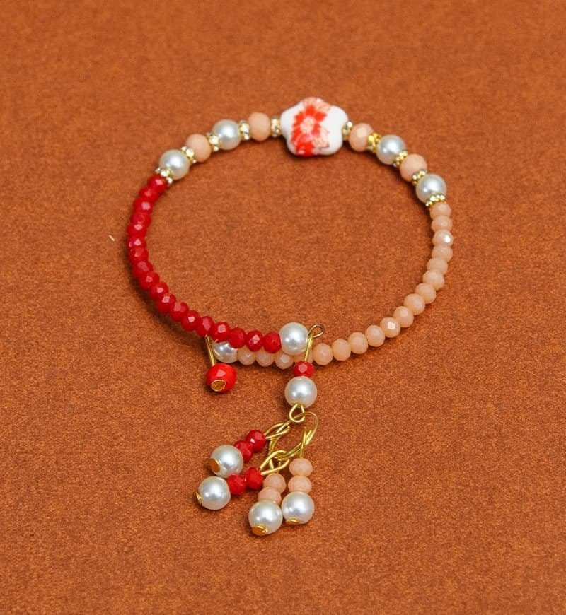 Red and Peach color Pearl Bracelet Rakhi For Women