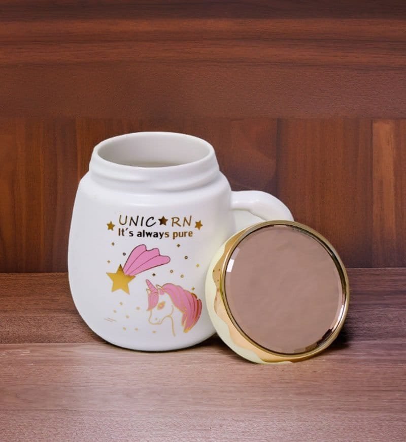 This Mug is a beautiful and unique way to enjoy your favorite hot beverage. The cup is made of high-quality ceramic and is decorated with a glittery finish. The lid is made of a mirrored material and has a handle for easy removal.